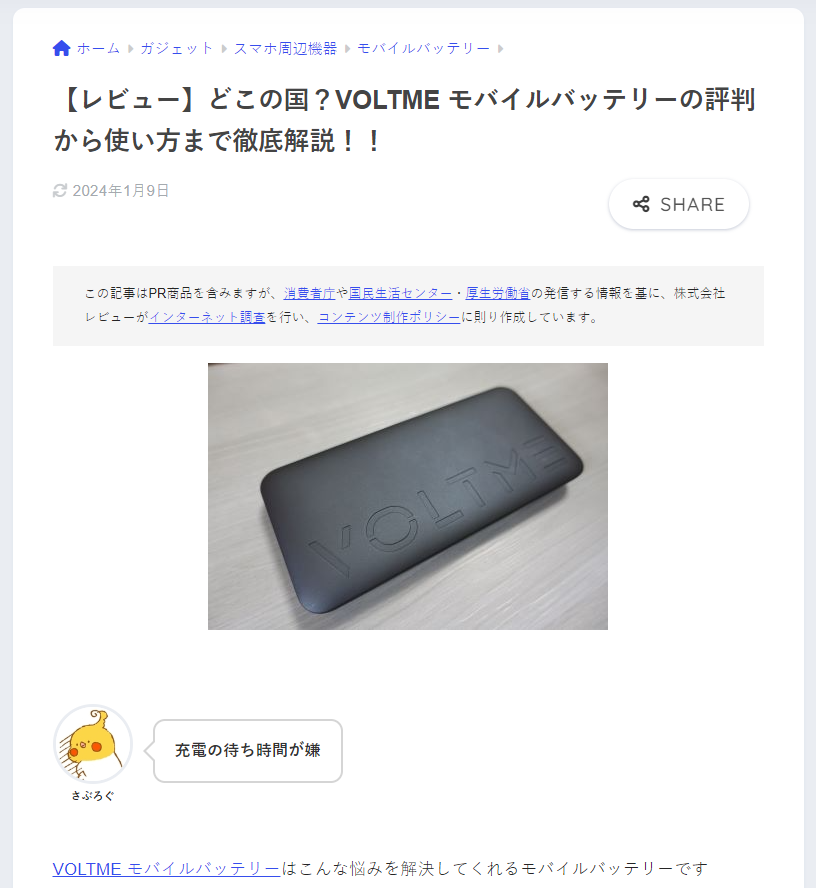 この度は【レビュー】どこの国?VOLTME モバイルバッテリーの評判から使い方まで徹底解説!!記事にてVOLTMEの製品が紹介されました。