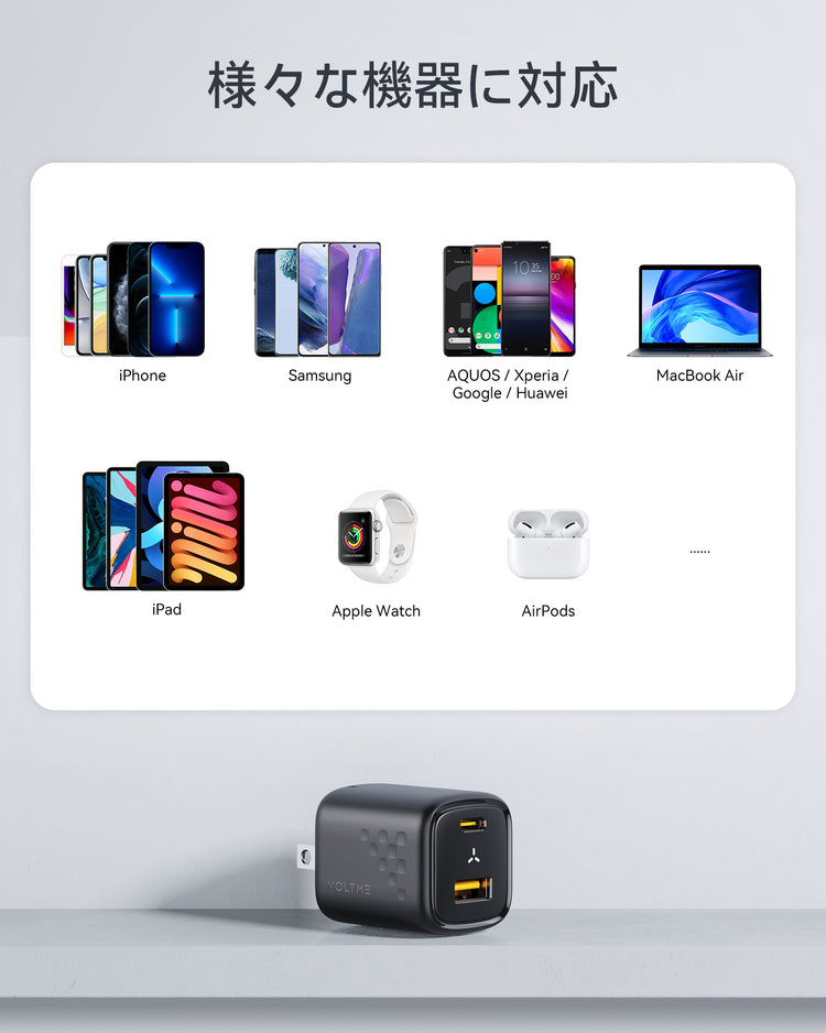 スマホ、タブレット端末、MacBook Airの充電をこれ一つで十分、持ち運びに便利な超コンパクト