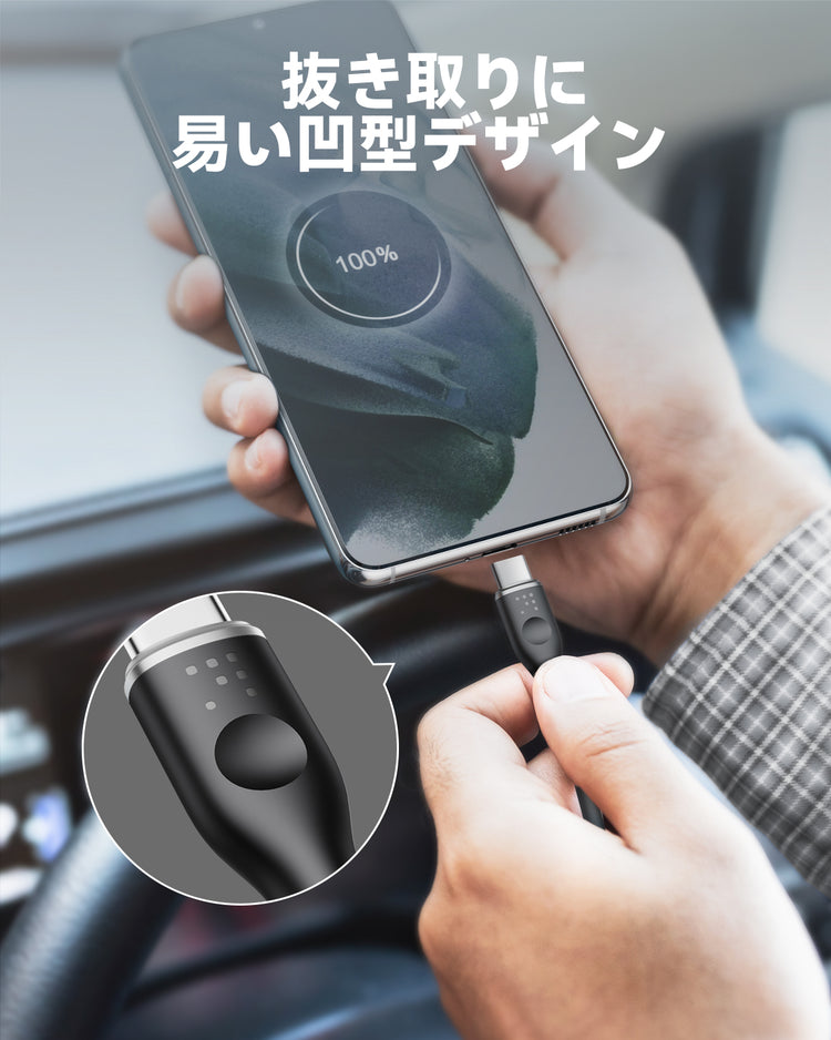 コネクタ部分に採用されている凹型設計が、滑り止めの役割を果たし、ケーブルの抜き差しをより簡単に行えます。