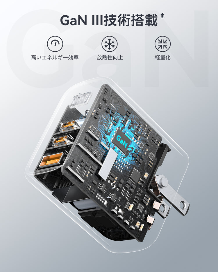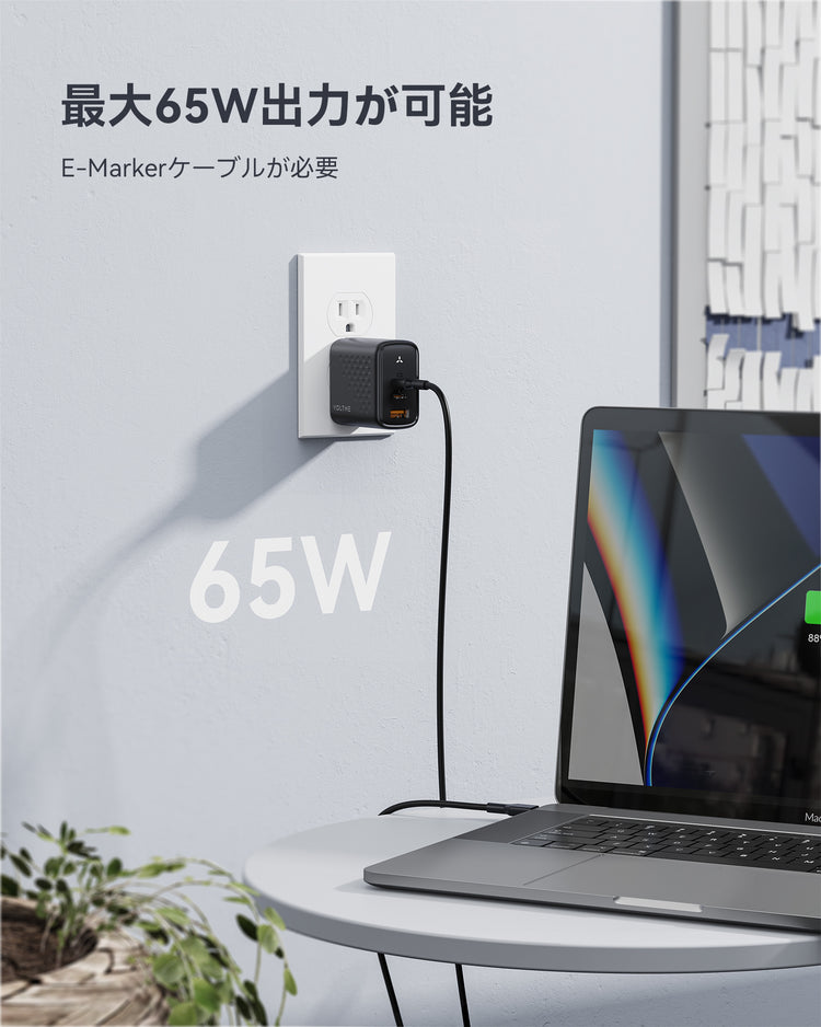 単ポート最大出力65W、卵サイズでPCでも充電可能