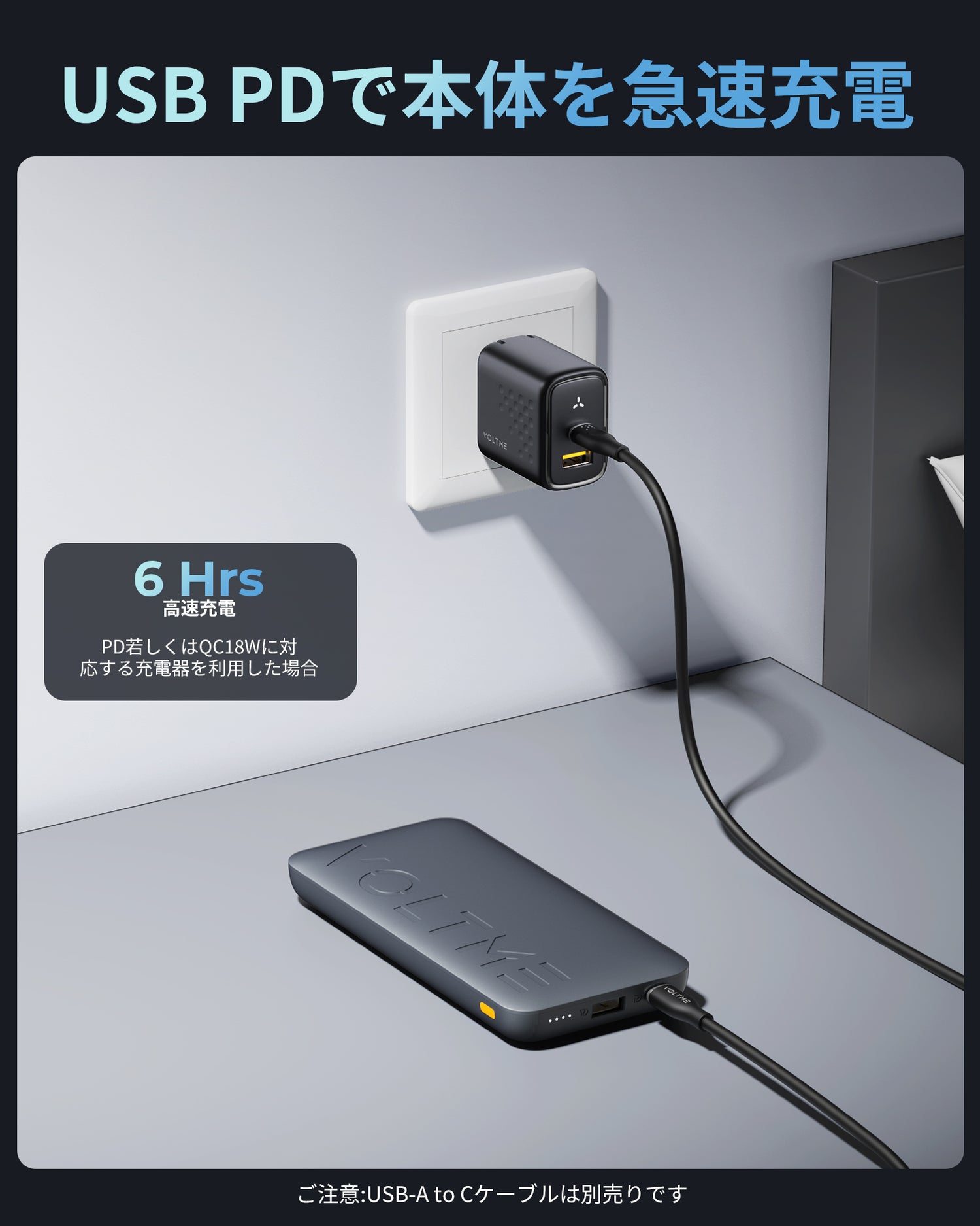 【あらゆる機器を急速充電可能】モバイルバッテリーのUSB Type-CポートはUSB PD規格による最大20Wの出力に、USB Type-AポートはQuickCharge3.0規格による最大18Wの出力にそれぞれ対応します。PPS(5~11V 2A)規格にも対応しており、iPhoneや Galaxyにも急速充電が可能です。一般的な5W出力の充電器に比べ、最大3倍速く充電できます。会議の時、アウトドア。災害など緊急時、コンセントのない場所でスマホやタブレットの充電に大活躍すること間違いなしです。