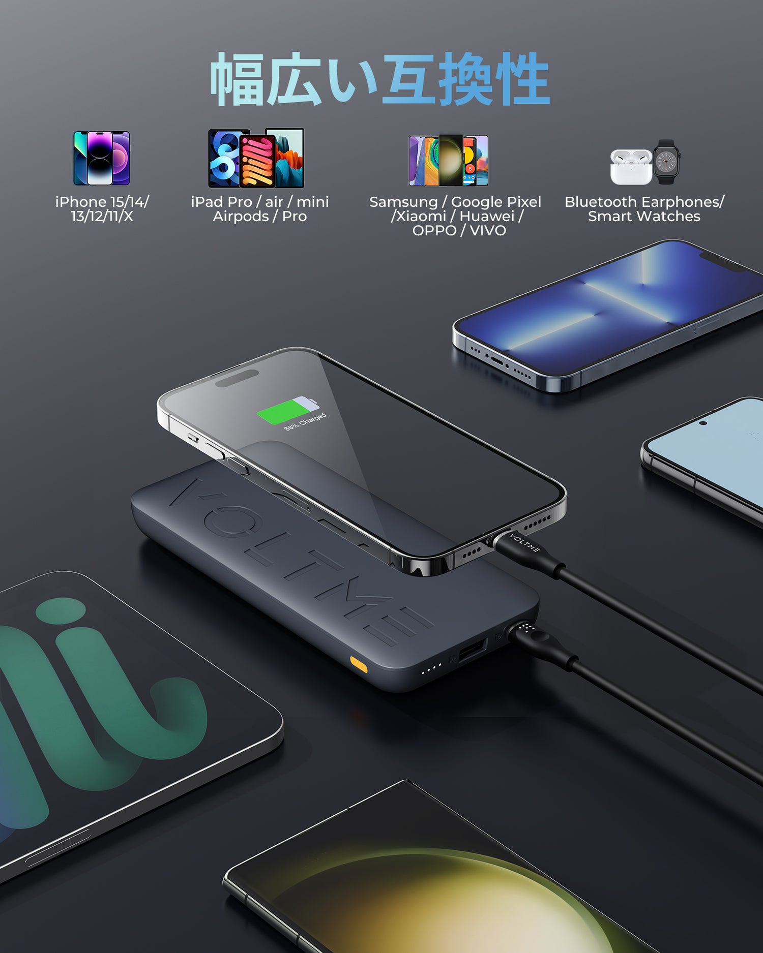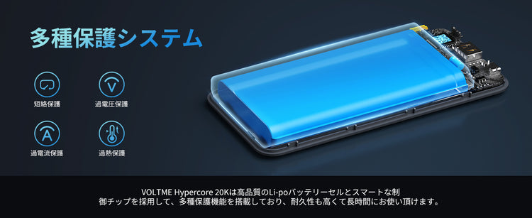【安心して使える】薄型モバイルバッテリー(HP20)には通常の18ヶ月を6ヶ月延長した24ヶ月のメーカー保証があります。(※保証は正規販売店Voltme Official JPからの注文のみが対象になり、注文番号が保証書の代わりとなります)。すべてのVOLTME製品は電気用品安全法(PSE)認証商品です。また製品は全品出荷検査を実施しております。お客様に安心してご利用いただけるよう万全を期しておりますが万一、初期不良や故障などが発生した場合は、どうぞお気軽にご連絡ください。必ずご満足いただけるよう速やかに対応して参ります。
