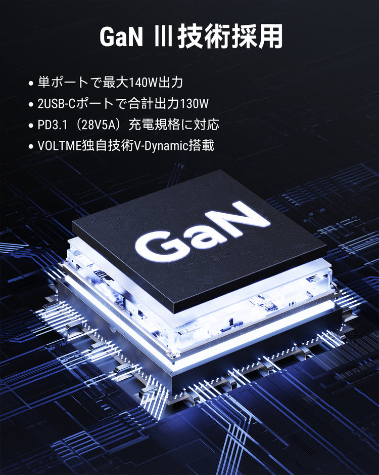 C1ポート(一番上)のみが140Wの急速充電に対応。C2ポート(中)が最 大100W PD 3.0に対応します。