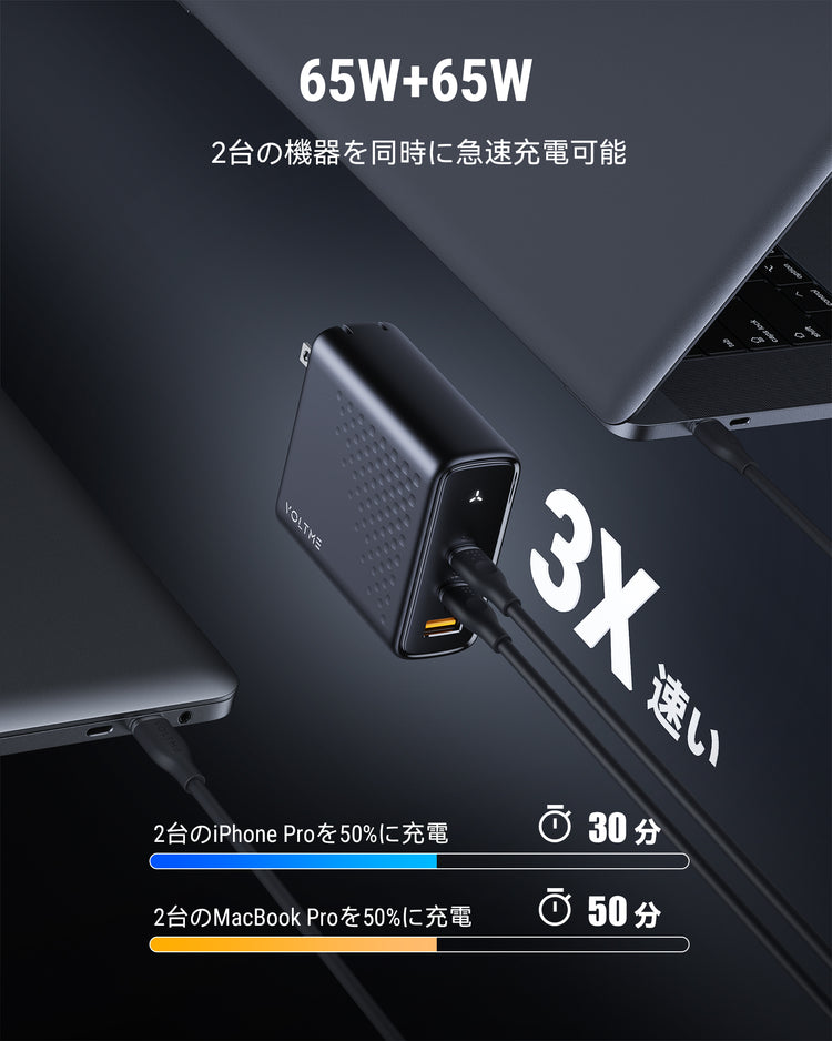 Macbook 2021への急速充電が出来ますが、APPLE純正のC to MagSafe充電ケーブルが必要です。C to Cケーブル(E-Marker搭載)でMacbook を充電すると、出力が最 大100Wしか出ておりませんのでご注意ください。